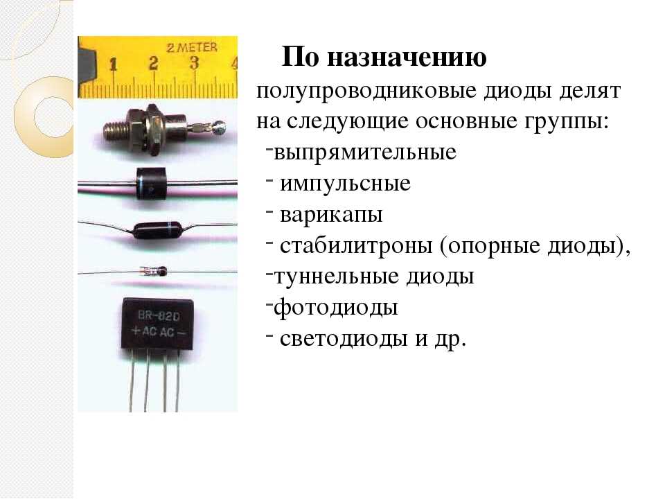 Диод состоит из PN-перехода с соответствующими электродными выводами и корпуса трубки. Диод имеет два электрода, электрод, выходящий из области P, является положительным электродом, также известным как анод; электрод, выходящий из области N, является отрицательным электродом, также известным как катод.