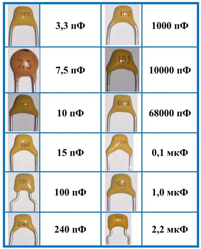 Более распространенный тип маркировки состоит из цифр, которые обозначают емкость в пикофарадах, не путать с фарадами! Всегда нужно помнить, что в отличие от резисторов, маркировка которых выполняется в омах, базовой величиной размерности независимо от способа маркировки являются пикофарады (если цифры отделяются запятой, — то микрофарады). В общем, отсчет емкости начинается с пикофарад.