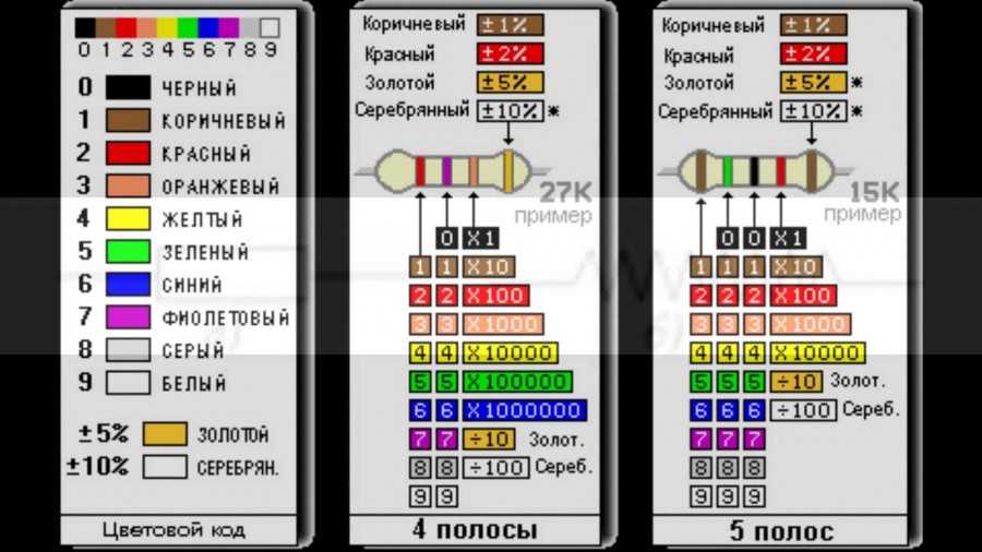 Определение номинального значения сопротивления резистора по маркировке цветовыми полосами: онлайн калькулятор