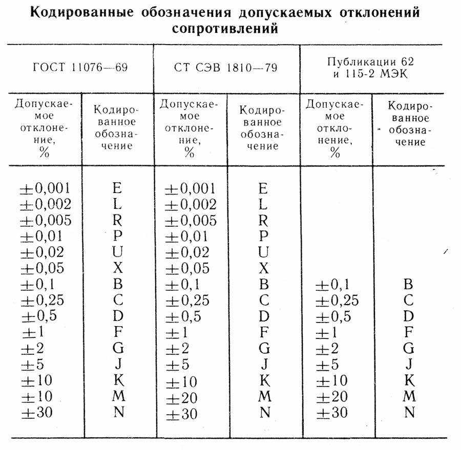 Таблица расшифровки буквенных обозначений в маркировке резисторов старого образца