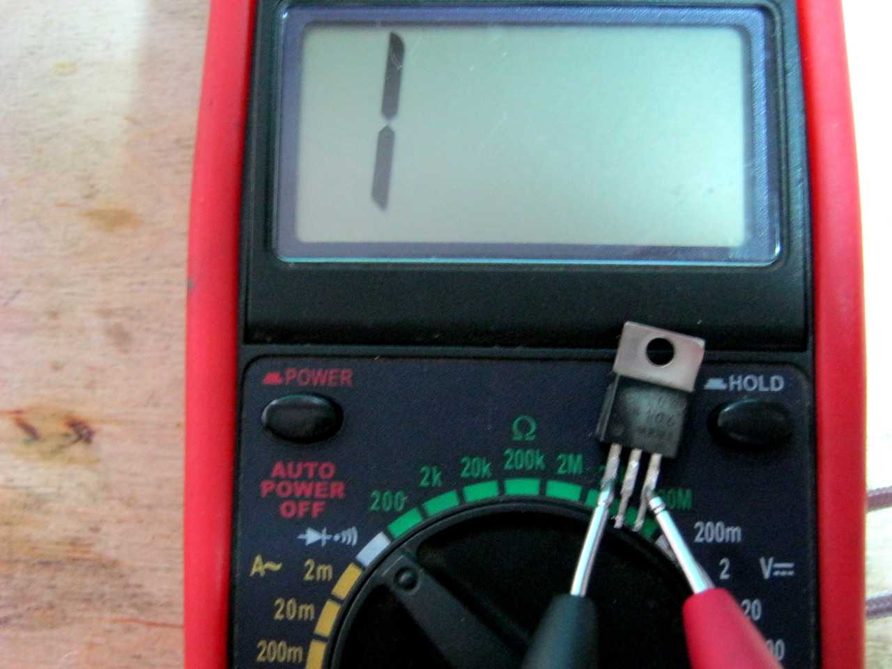 Здесь у нас мультиметр также показывает единичку. Значит можно дать диагноз транзистору – здоров.