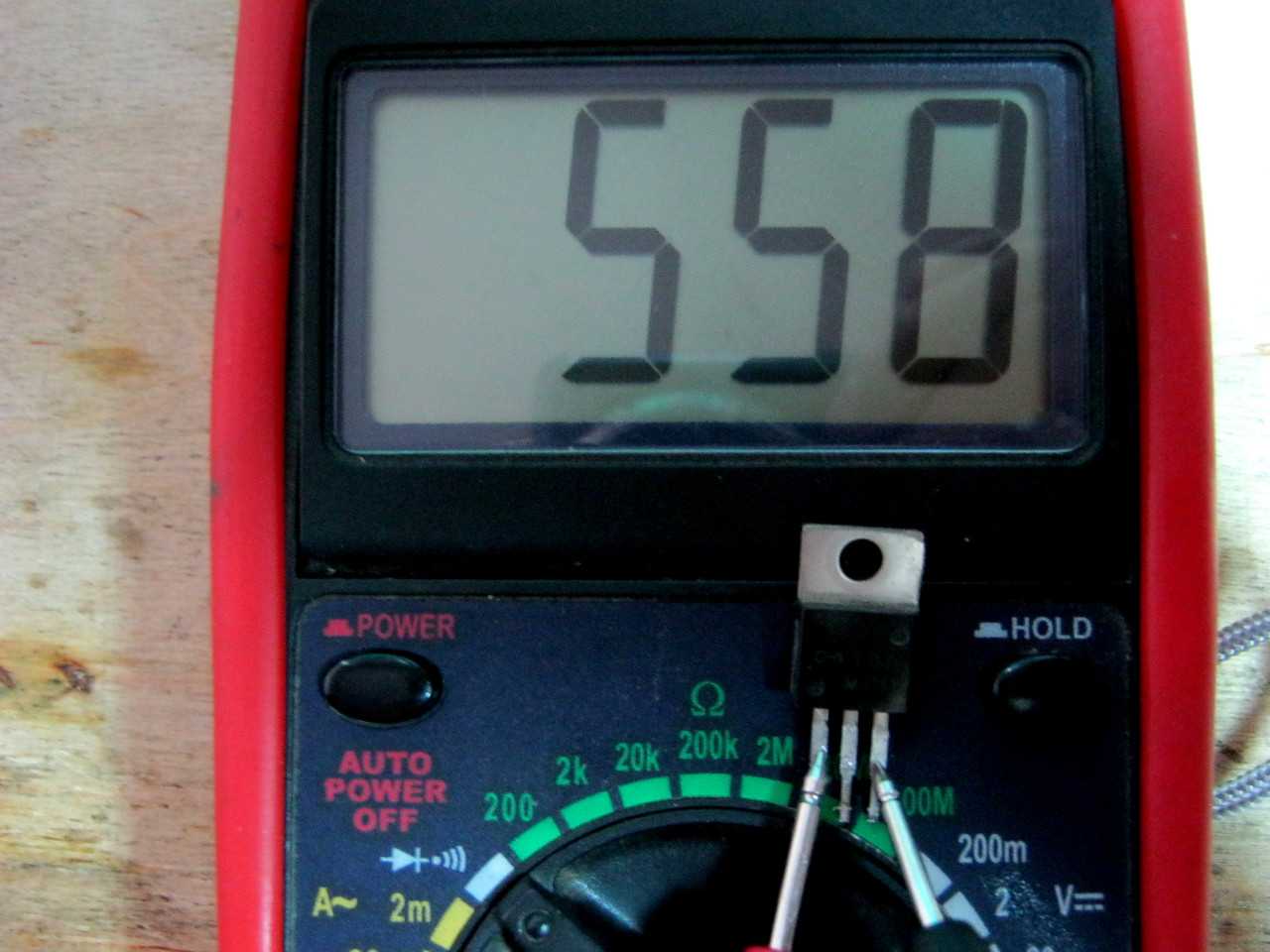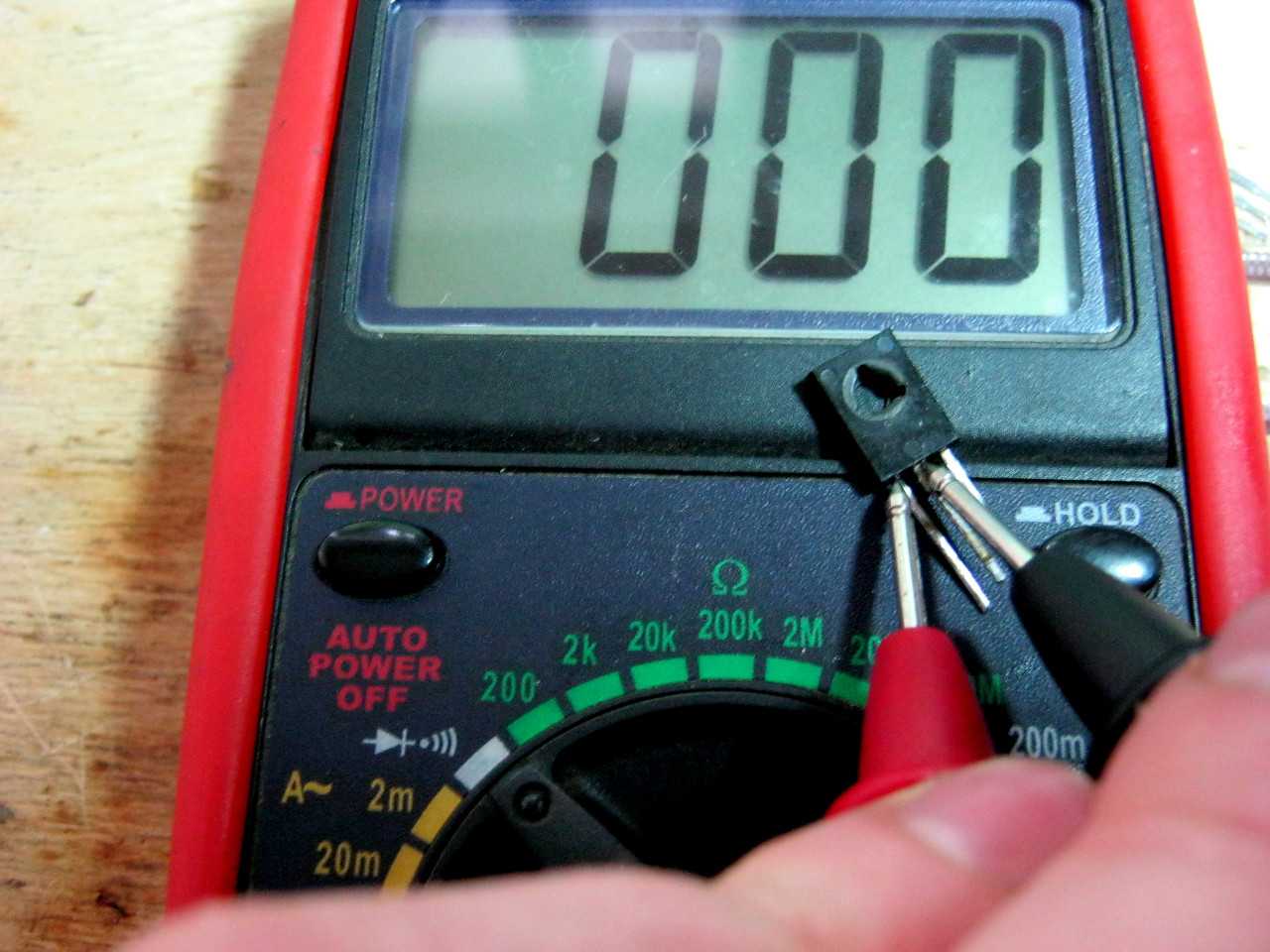 Проверка исправности конкретного транзистора требует некоторых познаний в электронике. Достаточно просто прозвонить выводы транзистора как электрическую цепь, чтобы убедиться, что транзистор исправен. Щуп с черным проводом подключается на вход COM прибора. К входу измерения сопротивления подключен красный провод.