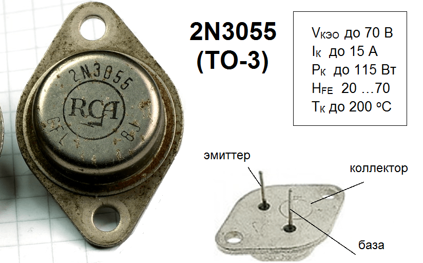 Для высокопроизводительных работ почти повсеместно используется NPN-транзистор 2N3055.