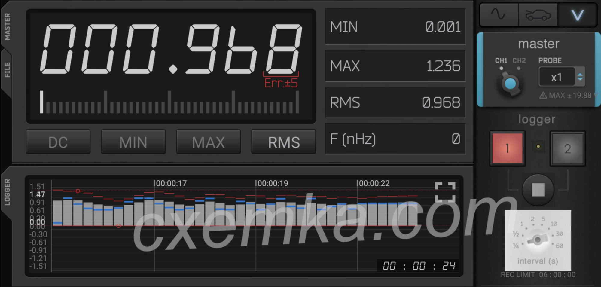 Ещё здесь есть возможность длительной регистрации значений напряжения (