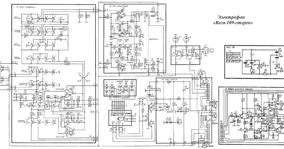 Вот чертеж данного устройства: Как видно, основные элементы таковы: Генератор импульсного тока; Кабель, соединяющий генератор с излучателями; Выпрямитель ВСА 5К Данный прибор используется в качестве выпрямителя переменного тока, и может применяться для зарядки аккумуляторов, или же, как источник выпрямленного электрического тока. Первый шаг — заменить все электролиты. Счётчик оборотов отремонтирован и настроен, пора собрать проигрыватель и запустить его! Электрофон 1980 года выпуска «Вега-108 С» — отличный усилитель